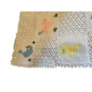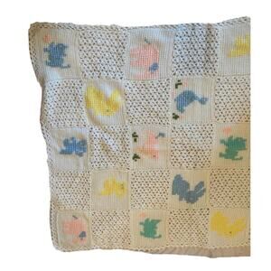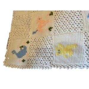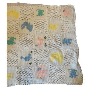 Vintage Hand Made Baby Throw Blanket Knit Crochet Afghan Animals 50" x 39"