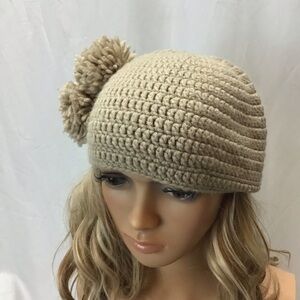 Vintage Hand Made Boho Tan Crochet Tassel Ball Winter Hat Beanie One Size. Excellent condition! From smoke free home.