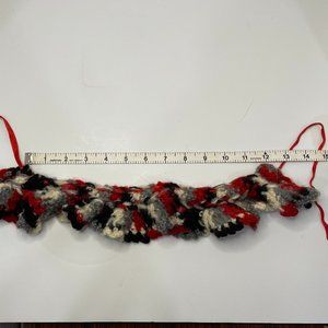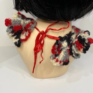Pretty Vintage Crocheted Collar with grey, white, black and red coloring and a red tie. Super cute and would look great with a shirt of any of those colors! The neckline measures 12" long