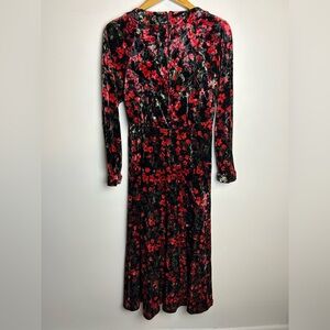 Elegant floral velvet dress with a stunning red and black design. Perfect for any occasion.