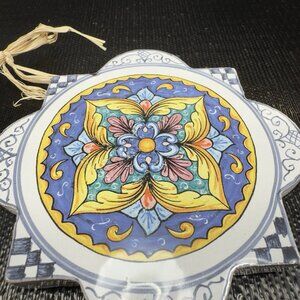 Vintage Hand Made Italian Pottery Tile Wall Hanging Trivet Thick Decorative Tile