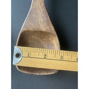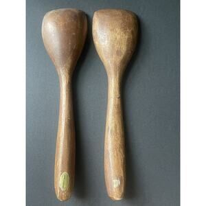 Add some tropical flair to your dining table with these vintage handcrafted monkey pod wood salad serving spoons. Made in the Philippines, these 12-inch spoons are crafted with the utmost care and attention to detail. The Hawaiian culture inspires the design, making them a perfect addition to any collection of dishes, bowls, and plates.