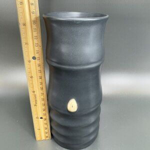 Vintage Hand Made Pottery Vase Vessel Black Glazed With Texture Knobs Signed CCI
