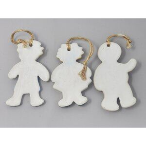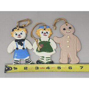 Vintage Hand Made Raggedy Ann/Andy + Gingerbread Man Ceramic Hanging Ornaments