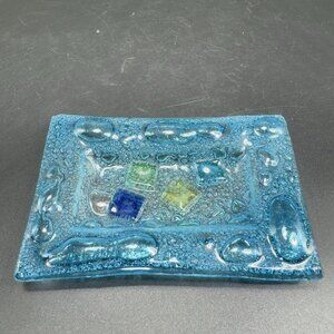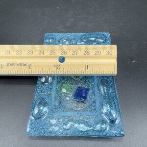 Vintage Hand Made Rectangular Trinket Dish Holder Container Plate Blue Bubbles
