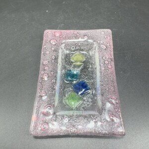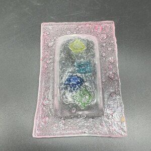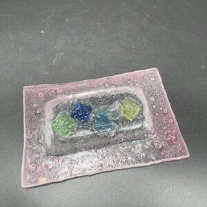 Vintage Hand Made Rectangular Trinket Dish Holder Container Plate Pink Bubbles