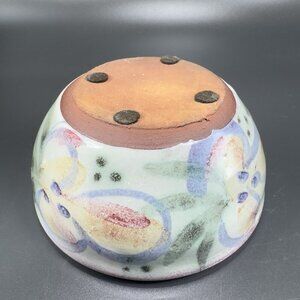Vintage Hand Made RedWare Pottery Round Dish Bowl Hand Decorated Bowl Dish VTG