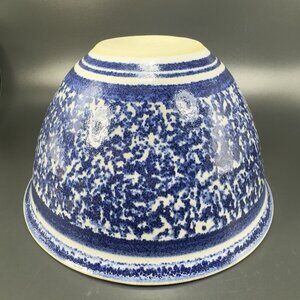 Vintage Hand Made Stoneware Pottery Dish Bowl Hand Glazed Blue Sponge ware Bowl