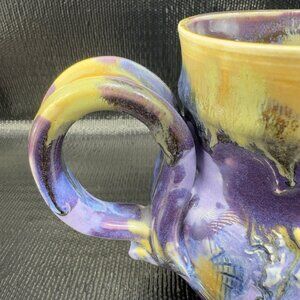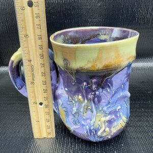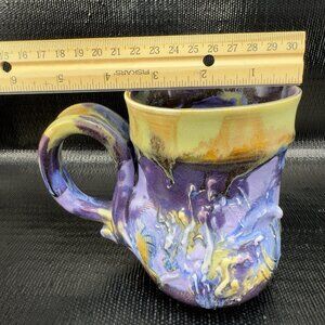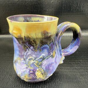 Vintage Hand Made Studio Pottery Coffee Mug Cup Heavy Drip Glaze Textured Mug