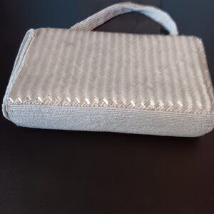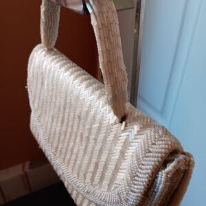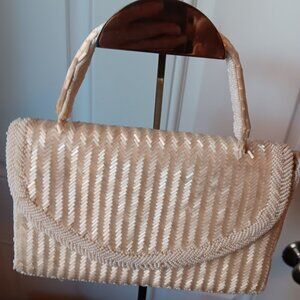 Vintage Hand Made in Hong Kong cream micro beads and sequin evening purse