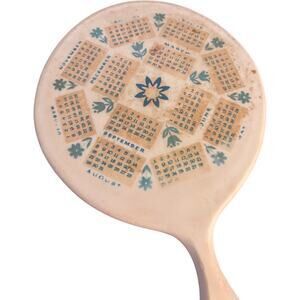 Vintage Hand Mirror with calendars on front. 1970's . White with teal accents.