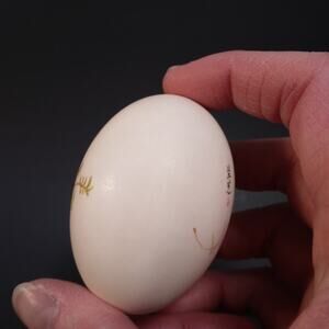 Vintage Hand Painted Asian Art Egg, Bird Wisteria Floral Pattern, Artist Signed
