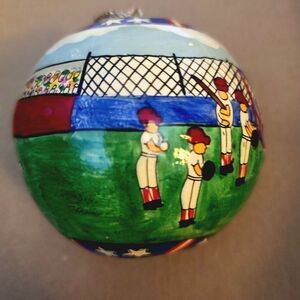 Vintage Hand Painted Baseball Game Ornament Made in India 4" Foreside?