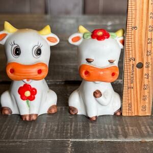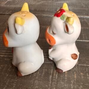 Vintage Hand Painted Bisque Cow Couple Salt & Pepper Shakers