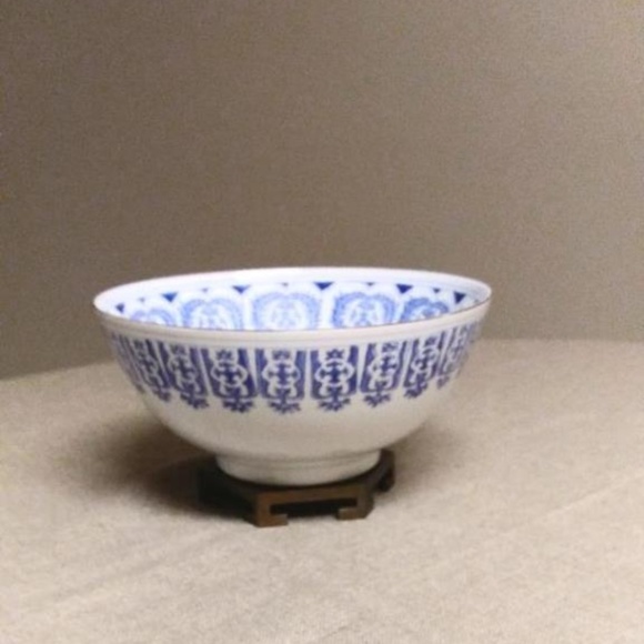 The bowl is 10"w X 10 X 5"h. It is in excellent condition. There are no chips or cracks. The brass bottom stand is not included.