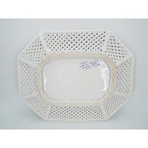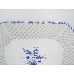 Vintage Hand Painted Blue and White Floral Platter Reticulated Lattice Portugal