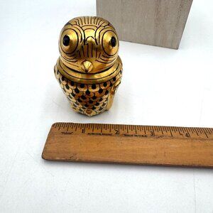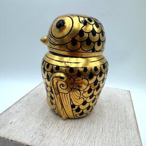 Vintage Hand Painted Burmese Gold & Black Lacquerware Owl Trinket Boxes delicate