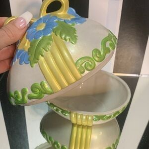 Super cute lidded ceramic Easter egg shaped trinket or candy dish