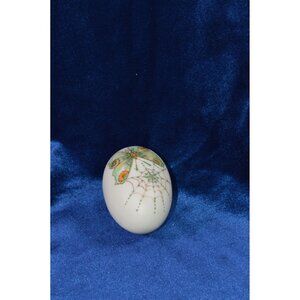 Vintage Hand Painted Ceramic Egg Butterfly Spider Webb Hollow Signed Dated