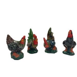 Vintage Hand Painted Ceramic Roosters Chickens Set of 4 Figurines Farmhouse