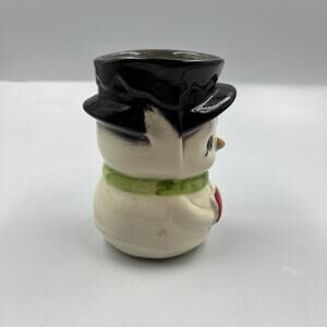Vintage hand painted ceramic snowman container/ vase decorative, kitsch style, adorable cutsie face. Snowman is in good condition no cracks or chips as pictured.