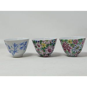 Vintage Hand Painted Chinese Sake/Tea Cup Floral Print Bottom Stamped