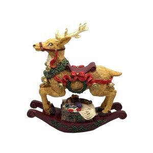 This vintage hand-painted Christmas musical rocking reindeer plays Jungle Bells. It is a medium-sized figurine made of resin, featuring a rectangular shape and multicolor paint. The reindeer is the subject, and the figurine plays music through a wind-up power source. The hand-painted finish adds to its original charm, making it a unique addition to any holiday decor collection. The Windsor brand ensures quality and craftsmanship in this festive and musical collectible. 10"T x 9"L x 4"W. Place view pictures closely as they are part of the description. Thanks. DR