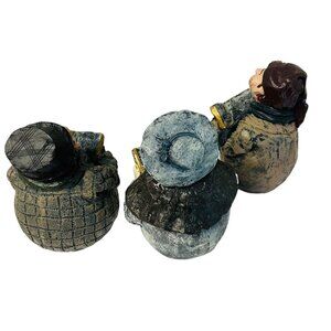 Charming set of three vintage ceramic carolers, hand-painted with intricate details. Ideal for holiday decor, these figurines add a festive touch to any home.