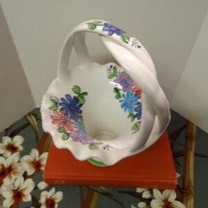 Vintage Hand Painted Floral Basket made in Portugal, Vestal