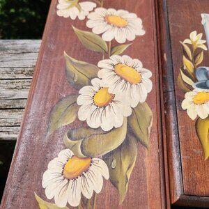 This vintage wall decor set features hand-painted daisies and a candle motif on wood. Adds a timeless farmhouse charm to any rustic space.