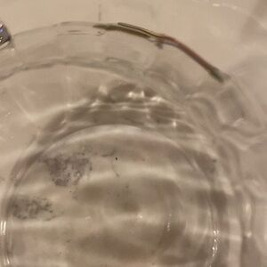 On inside near handle there are two small dark spots. Also on bottom one tiny black spot. They are not noticeable. See all photos