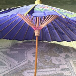 Vintage Hand Painted Japanese Chinese Bamboo Wood Umbrella Parasol