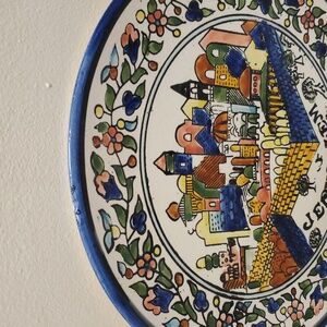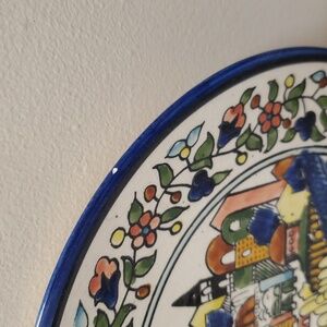 Beautifully colored and vibrant city scene. Has 2 holes on back to take string as wall decor.