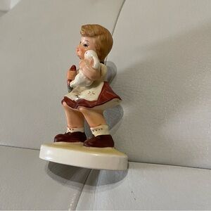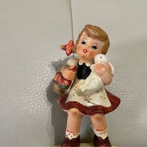 Vintage Hand Painted Lefton girl holding a bunny looks like a Hummel no flaws