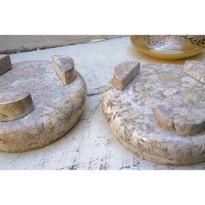 The Onyx and Marble stone bases have a lovely earthtone, glossy look and are solid and heavy. Together, these pieces present an exquisite presentation and would add a lovely accent in any bohemian or eclectic environment.
