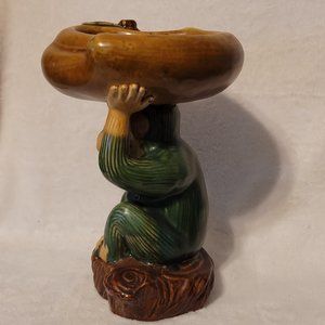 Vintage Hand Painted Majolica Monkey with basket/dish on Head