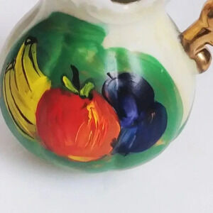 Vintage Hand Painted Mini Pitcher. Gold Trim and handle (the handle has the gold worn off at the top, see pic). Hand painted fruit.