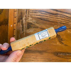 This charming vintage miniature rolling pin features hand-painted blue roses and vibrant blue handles. It doubles as a recipe holder, making it both decorative and functional. A nostalgic kitchen collectible with timeless charm.