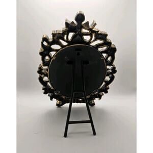 This Vintage Hand Painted Mirror features a unique mountain cabin creek scene, signed by artist J Graham. The oval-shaped mirror has a multicolor design with a plastic frame finished in gold accents. The beige frame is made of oak, adding a touch of vintage/retro style to any room. Measuring 16 inches in length and height, this accent mirror is perfect for the entryway, bedroom, or living room, making it a charming addition to your home décor.