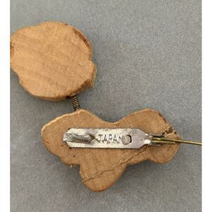 Vintage Hand Painted Monkey Nodder Bobble Brooch Spring Neck Wood Hand Painted