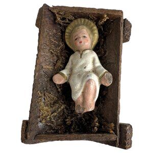 Vintage Hand Painted Nativity Scene Set 8 Figurine & Stable Made West Germany