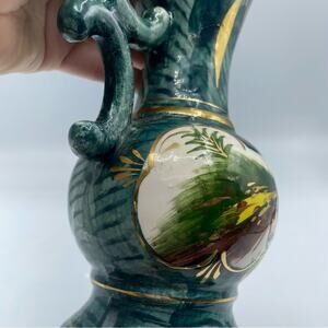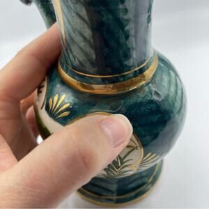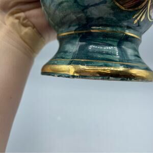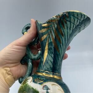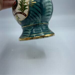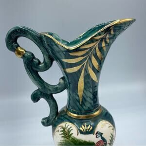 Vintage Hand Painted Peacock Ornate Vase Decor Green Teal Gold Porcelain