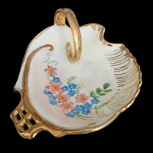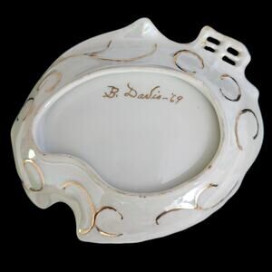 Vintage Hand Painted Porcelain Trinket Dish Gold Trim Floral Signed B. Davis ’69