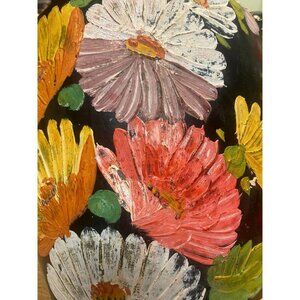 Classic black enamel background with pink, orange, yellow, and white flowers