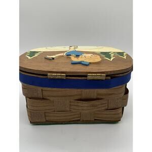 Vintage Hand Painted Signed Basket Purse Girl Ice Skating 8” x 5.75” Lined