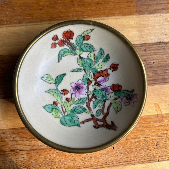 Vintage Hand Painted Small Dish in Brass from Hong Kong 1950's