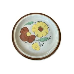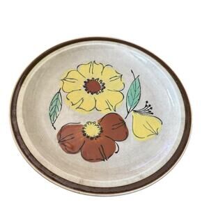 Vintage Hand Painted Stoneware Dinner Plate (3) Floral Design Retro Kitchenware