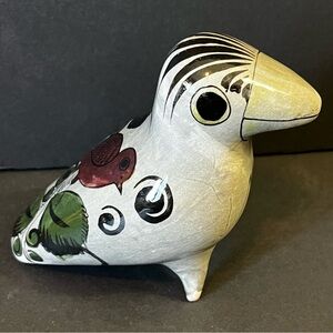 Vintage Hand Painted Tonala Mexican Bird Grey Folk Art Clay Pottery Hand Painted