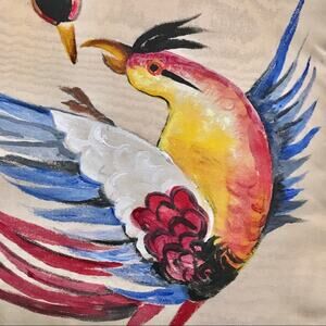 Vintage Hand Painted Two Birds Quails in Flight Ivory Silk Pillow with Fringe