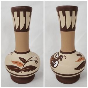 Vintage Hand Painted Vase Southwest Style with Native Inspired Spirit Bird Quail